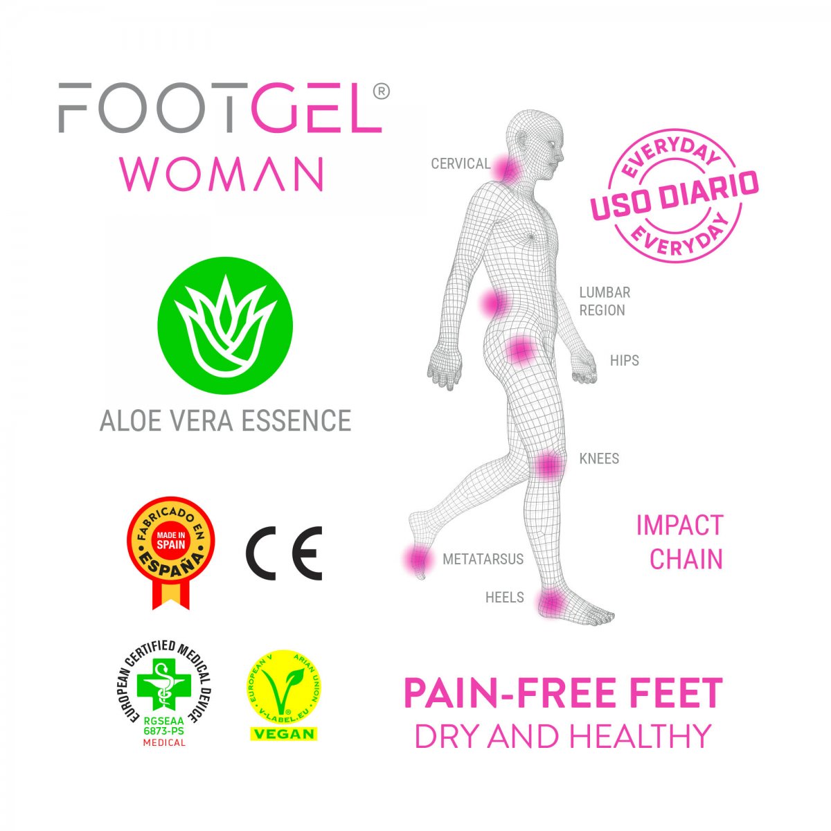 Footgel Urban Woman-inläggssulor är utformade för att ge daglig komfort, smärtlindring och långsiktigt skydd för dina fötter och leder. Perfekt för kvinnor som spenderar många timmar gående eller stående och vill känna sig bekväma, stödda och smärtfria under hela dagen.